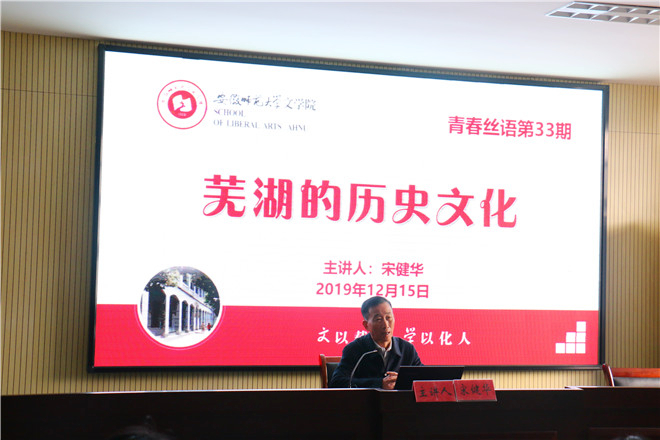 宋健华主任以文化为切入点,围绕“芜湖的历史文化”、“芜湖的文化建设”、“芜湖的文化产业”依次展开本次讲座。首先,宋主任分别从广义和狭义两方面为在座学员解释了什么是文化,并由此引出对芜湖历史文化的具体介绍。他指出,芜湖文化是典型的“吴头楚尾”,楚文化的强劲之气不断衰弱,吴文化的华丽新颖逐渐开始,具有包容性、开放性以及创新性等特点,同时也存在着小富即安、小城即满等缺点。接着,宋健华主任就文化的构成要素,具体阐明了芜湖在山、水、人、文方面的优势。从人字洞、小九华到镜湖、青弋江,从张玉良、戴安澜等著名人物到铁画、宗教、西洋建筑群等文化,芜湖都具有着丰厚的历史文化价值。谈及文化建设,宋健华主任以芜湖的两馆建设、鸠兹古镇、雕塑公园等为例分别从文化自信、文化的“无中生有”以及文化的“节外生枝”三个角度展开叙述,同时,他强调,如果想把芜湖发展成为旅游目的地,就要打造特色文化。在芜湖的文化产业方面,他谈到,芜湖的文化体制改革始于2006年,具体可以从两方面入手:将国有的文艺院团推向市场以及发展芜湖特有的文化产业,而芜湖现阶段的动漫创意产业发展很快,前景也很大。