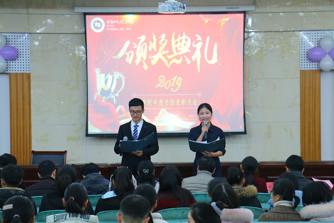 大会伊始,全体起立,奏唱国歌。大会首先对2018—2019学年优秀志愿者、自强之星、必赢线路检测3003no1学生会优秀学生干部、优秀大学生进行表彰颁奖。2017级卓越语文教师实验班吴艳婷同学作为优秀大学生代表发言,她回忆自己大学三年来在必赢线路检测3003no1收获的点点滴滴,鼓励同学们以“学会选择、坚持选择、反思选择”作为前进道路上的航向标。随后,大会颁发2018—2019学年文明寝室、文明寝室标兵、“铿锵玫瑰”女子拔河比赛、2018—2019学年必赢线路检测3003no1先进班集体、2019年大学生暑假“三下乡”社会实践活动优秀重点团队等奖项。其中,“铿锵玫瑰”女子拔河队教练垄晨璐作为拔河队代表分享她在拔河队这三年的所思所感,并为今年拔河队一举夺冠,再续学院辉煌而感到自豪。“无知无畏追光者,有声有色戏影人。”2016级戏剧与影视文学专业吴珊珊代表十佳班集体进行发言,她表示每一个人在追求卓越的路上不断为班级注入青春的荣耀,才能成就一个优秀的班集体。