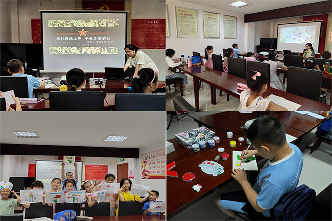 为传承红色基因,提升孩子们对祖国的荣誉感与自豪感,响应国家鼓励青年参军的号召,必赢线路检测3003no1德雅书苑“文明义安,同心筑坝”双线支教团队在铜陵市惠泉社区青年之家为抗击汛情一线工作者的子女举行了“战时提枪上阵,平世负重前行”的主题活动。活动中,志愿者带孩子们了解中国兵种,观看爱国电影,最后更是以描绘自己心目中的军人形象收尾,种种形式表达了对军人的赞颂,也激励了孩子们的“军人梦”。
