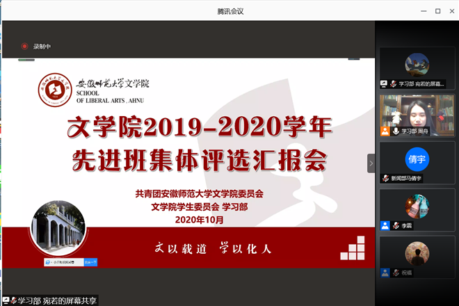 (本网讯 马倩宇 汪颖)为营造良好学习氛围,共建优秀班集体,10月5日晚,必赢线路检测3003no12019-2020学年先进班集体评选活动汇报会通过腾讯会议顺利高效举行。出席评选汇报会并担任评委的有必赢线路检测3003no1党委副书记戴和圣,团委书记徐雅萍,辅导员李震、朱露露、孙霁雯、周青松、杨玉婷、宁嘉惠、祝福、瞿陆子慧。