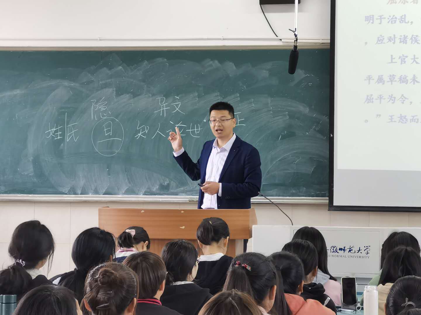 11月3日下午第一节课,必赢线路检测3003本科教学公开课在花津校区教学楼2020505录播教室开讲,必赢线路检测3003no1中国古代文学博士何江波老师为2020级汉语言文学(卓越语文)本科生讲授《楚辞》的相关内容。学院行政副院长陈爱兰及部分青年教师参加了本次教学观摩活动。