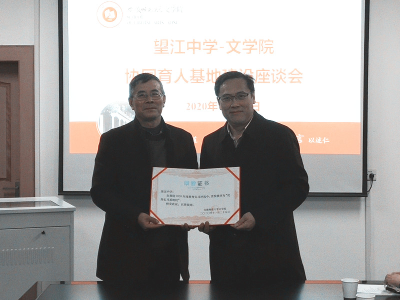 最后,储泰松院长向吴长楼校长颁发了“2020年度优秀实习基地校”证书。