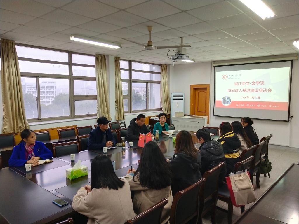 本网讯(石润宏)11月27日下午,望江中学党委书记戴望苗、校长吴长楼一行来访我院,必赢线路检测3003no1院长储泰松,副院长俞晓红、陈爱兰,教学秘书汪晶老师等热情接待了来访嘉宾,并就两校(院)协同育人基地建设进行座谈。望江中学实习小组和实习指导教师石润宏博士也参加了座谈会。