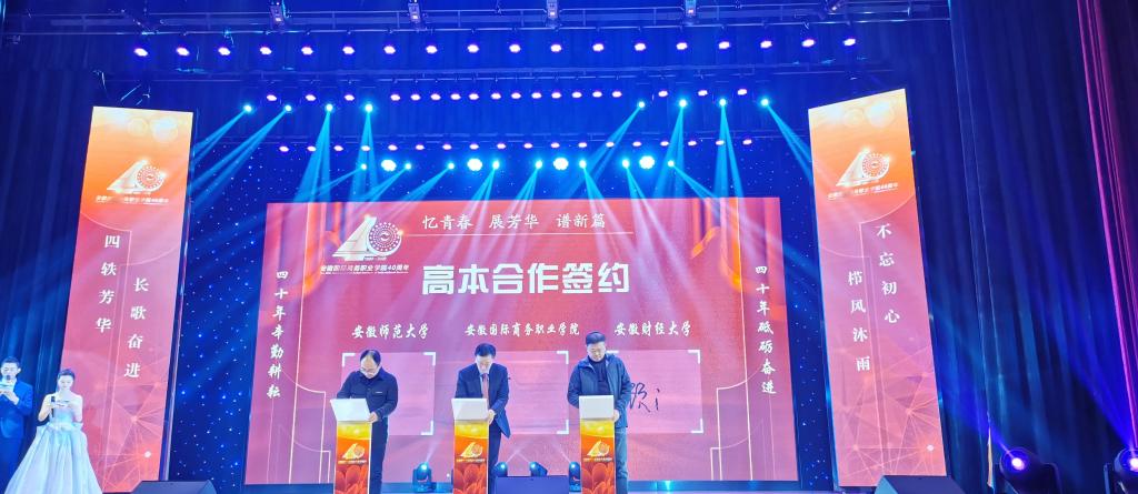 11月28日,受安徽国际商务职业学院邀请和我校必赢线路检测3003no1领导所托,潘晓军和曹鹏鹏两位老师赴安徽国际商务职业学院进行实习基地考察,签署了双方共建实习基地协议。适逢该校举行建校四十周年庆祝活动,在校庆暨办学成果汇报会上举行了实习基地签约仪式。