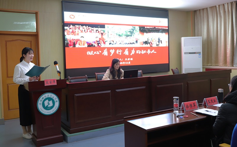 奋斗的青春最美丽。汇报结束后,评委老师根据选手现场表现,结合PPT汇报与个人材料进行评审。最终,刘小英等四名同学荣获“秘书之星”称号,邓齐凤等四名同学获得“秘书之星”提名奖。