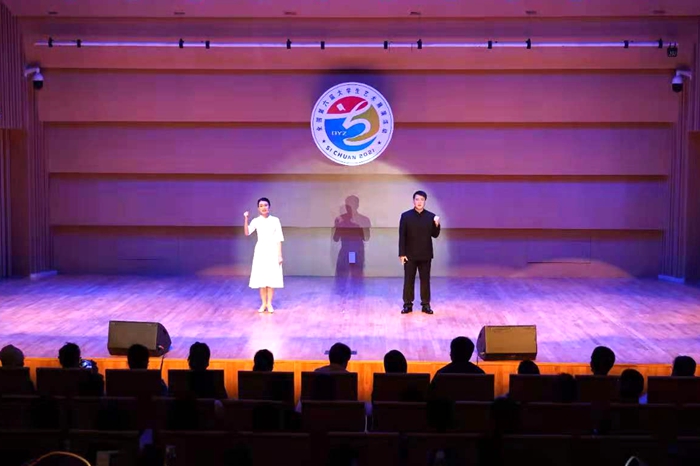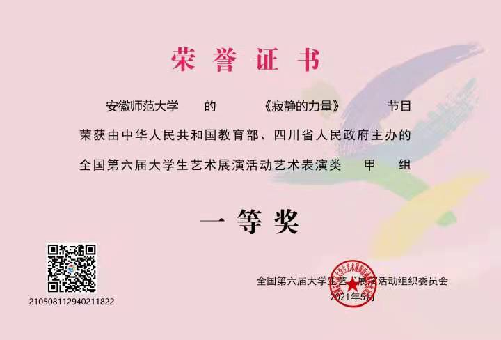 据了解,全国大学生艺术展演是安徽省教育厅确定的A类学科竞赛。本届展演活动以“奋斗·创新·奉献”为主题,由教育部和四川省人民政府主办。全国31个省(区、市)、新疆兵团和香港特区、澳门特区198所高校的6800余名参演师生齐聚成都参赛。今年3月收到全国现场展演参展通知后,必赢线路检测3003no1高度重视,在校团委(大学生艺术教育中心)、教务处的统一指导和部署下,立即组织参演师生启动各项准备工作,并全程做好服务保障。在成都城市音乐厅举行的艺术表演节目展演活动中,必赢线路检测3003no12018级汉语言文学(师范)专业余微微和2018级卓越语文教师实验班王府同学以饱满的精神状态和生动的表演诠释了作品的主题意蕴,充分展示了当代大学生与中国共产党同行、与祖国同行、与人民同行、与时代同行、与梦想同行的信念和昂扬奋进的精神风貌,赢得在场高校艺术教育观察员和广大观众的阵阵掌声。