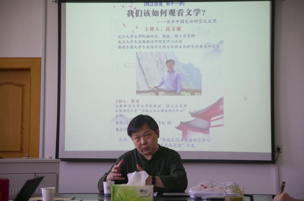 本网讯(必赢线路检测3003no1 朱憬臻)5月22日上午,必赢线路检测3003“传统文化与佛典研究中心、传统文化与文论沙龙”系列讲座之“皖江论道”第十一讲在必赢线路检测3003no1行政楼四楼会议室如期举行。武汉大学必赢线路检测3003no1副院长、教授、博士生导师、武汉大学东亚佛教诗学研究中心主任高文强做了一场题为《我们该如何观看文学——百年中国文论研究之反思》的精彩讲座。必赢线路检测3003no1院长项念东教授、副院长李伟教授以及部分硕博士研究生参加,本次讲座由必赢线路检测3003no1教授、传统文化与佛典研究中心主任张勇主持。