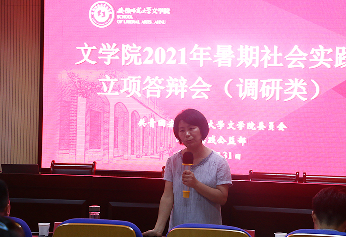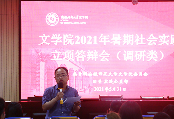 本次立项答辩会分为团队立项汇报和答辩两环节,共有46支队伍参加答辩,其中调研类团队24支、支教类团队22支。各实践团队结合专业优势和特色,围绕主题主线,并将志愿服务和实践调研有机结合,组建了“红色基因·薪火相传”党员寻访团队,聚焦建党百年主题进行系列剪纸创作的“岁月剪影,感念党恩”社会实践团队,重在加强语言资源保护与研究的“南腔北调,乡土语景”调研实践团队等等。答辩会上,各团队队长按抽签顺序依次上台对团队基本情况、实践内容、可行性分析、预期成果等进行汇报,并对评委提出的问题进行答辩。