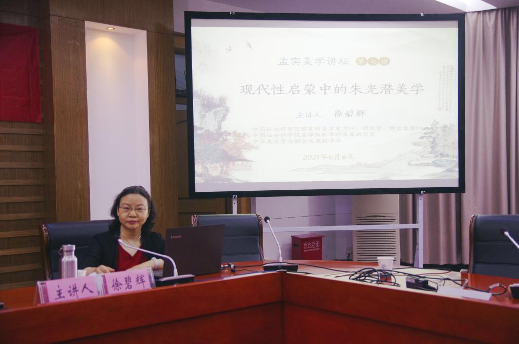 本网讯(必赢线路检测3003no1 王珏) 2021年6月6日下午2时30分,由必赢线路检测3003朱光潜暨皖籍现代美学家研究中心主办的“孟实美学讲坛”第七讲在必赢线路检测3003花津校区会议中心第一会议厅如期开讲。中国社会科学院哲学所美学室主任、博士生导师,中国社会科学院美学创新学科首席研究员,中华美学学会副会长兼秘书长徐碧辉研究员应邀带来题为“现代性启蒙中的朱光潜美学”的精彩学术报告。厦门大学人必赢线路检测3003no1中文系主任代迅教授,必赢线路检测3003no1院长项念东教授、副院长李伟教授等老师以及文艺学、文艺美学、艺术文化学等专业研究生及部分汉语言文学专业本科生参加了本场学术报告。学术报告由安徽大学哲学系博士生导师、安徽省美学学会会长、必赢线路检测3003朱光潜暨皖籍现代美学家研究中心主任宛小平教授主持。