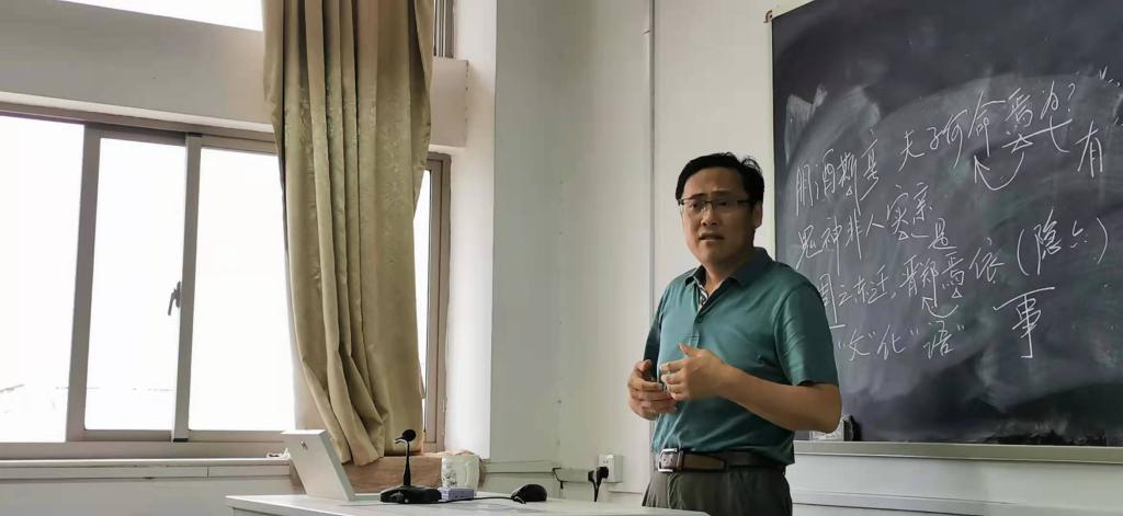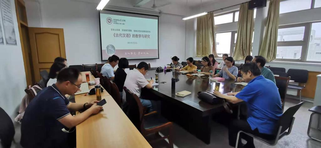 本期沙龙的主题为《古代汉语》课程的教学与研究,旨在同步教学内容、统一教学目标、优化教学效果、促进青年教师成长。沙龙主要议程由“专家讲座”“政策解读”“经验分享”“教学准备”四个部分组成。首先由詹绪左老师为大家带来《如何上好古代汉语课》的专题讲座。詹老师结合有趣的文字知识、生动的语言事实,从“温故知新”“深入浅出”“教研一体”“以‘文’化‘语’”四个方面指点青年教师如何上好古代汉语课。温志权老师带领大家学习了教育部和学校的最新教学文件,指出要着力打造“金课”,淘汰“水课”,建设一流课程,强化教育教学过程管理,将思想政治教育融入课程教学全过程。曹鹏鹏老师作为优秀青年教师代表,分享了自己首次执教《古代汉语》的授课经验。他指出课前准备阶段要深入钻研教材,博取众家之长,精心备课;课程实施阶段需关注学生的教学反映,适时调整教学策略;课后应及时总结课程效果、吸纳学生的反馈意见。储泰松老师就《古代汉语》的教学准备环节向大家作了详细介绍。具体而言,教学内容上做好选择与衔接;课堂教学管理上应在学习要求、课堂纪律、拓展学习等方面帮助学生建立良好的学习习惯;课程考核上应做到优化考核形式、查验学习效果、指引学习方向;教学要求上要说透语言要点、梳理章法结构、关注学术前沿。此外,教师还应密切关注教学中的科研话题,做到教研相长。