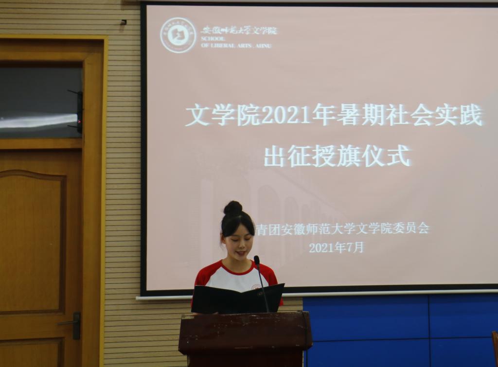 本网讯(必赢线路检测3003no1 杨玉婷 汪颖 马倩宇)永远跟党走,奋进新时代。为推动青年学生在观察实践中学党史、强信念、跟党走,在社会实践的大课堂中受教育、长才干、作贡献。7月6日下午,必赢线路检测3003no1在花津校区会议中心第三报告厅举行2021年大学生暑期“三下乡”社会实践出征仪式,校团委书记汪凯,思政指导教师、马克思主义学院副教授佘君,必赢线路检测3003no1院长项念东、党委副书记刘飞、副院长饶宏泉、副院长陈爱兰,以及暑期社会实践指导教师代表和实践团队学生代表参加本次仪式。仪式由院团委副书记杨玉婷主持。