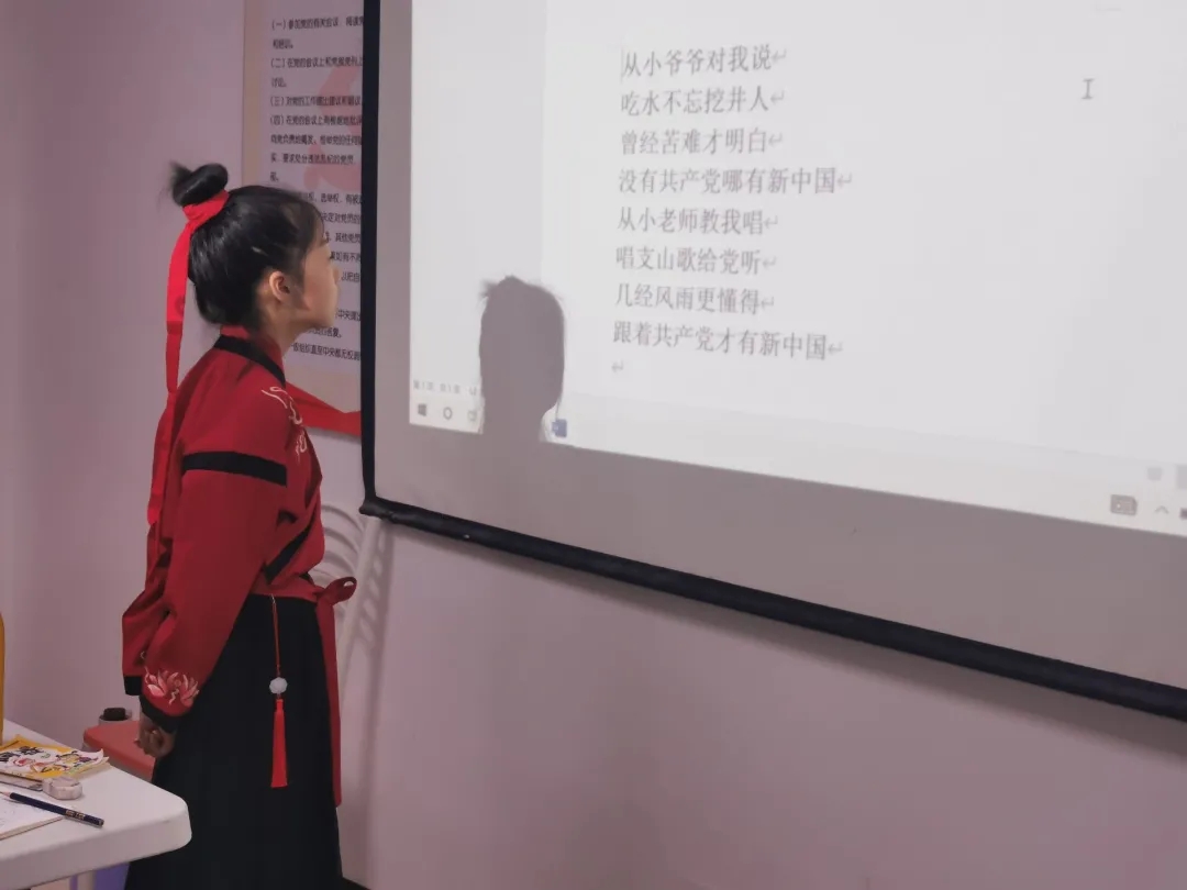 五四爱心学校各支教团队紧紧围绕“永远跟党走,奋进新时代”实践主题,设计课堂内容,同时不忘树立自己的品牌特色,精心编写教案,发挥师范优势。其中,赴弋江嘉园社区“弋行向党”支教队除了日常的预习复习、辅导作业外,团队还推出了“特色课程”。志愿者们根据自身特长将红色党史宣讲与授课内容相结合,利用多样的活动形式,带领小朋友们领略共产党的百年峥嵘岁月。红梅花开支教团队及时向小朋友们介绍防疫故事、普及防疫知识,通过观看影片、开展讲座的方式向抗疫英雄致敬。体育场社区则积极开展节约粮食主题教育活动,通过讲述故事和播放视频,让小朋友们生动的认识到粮食的珍贵。美加印象社区的志愿者带来特色课程“中国汉字”,趣味展现博大精深的中国文化。大砻坊社区的志愿者带领小朋友们参观了 王稼祥纪念园,了解革命先烈的光荣事迹,感受波澜壮阔的革命历史。