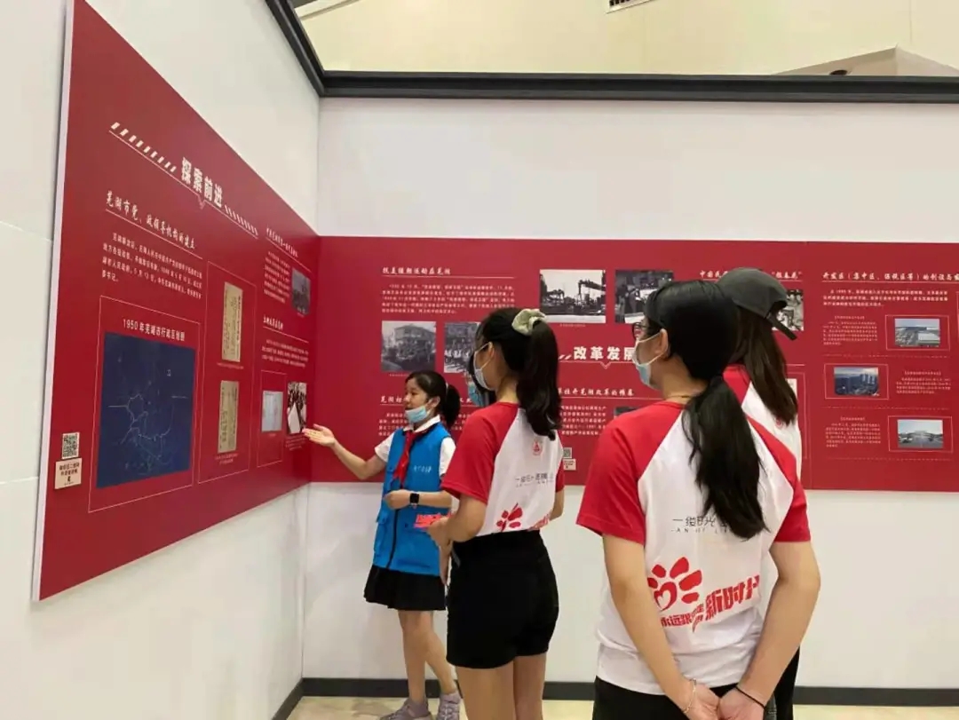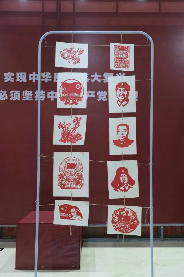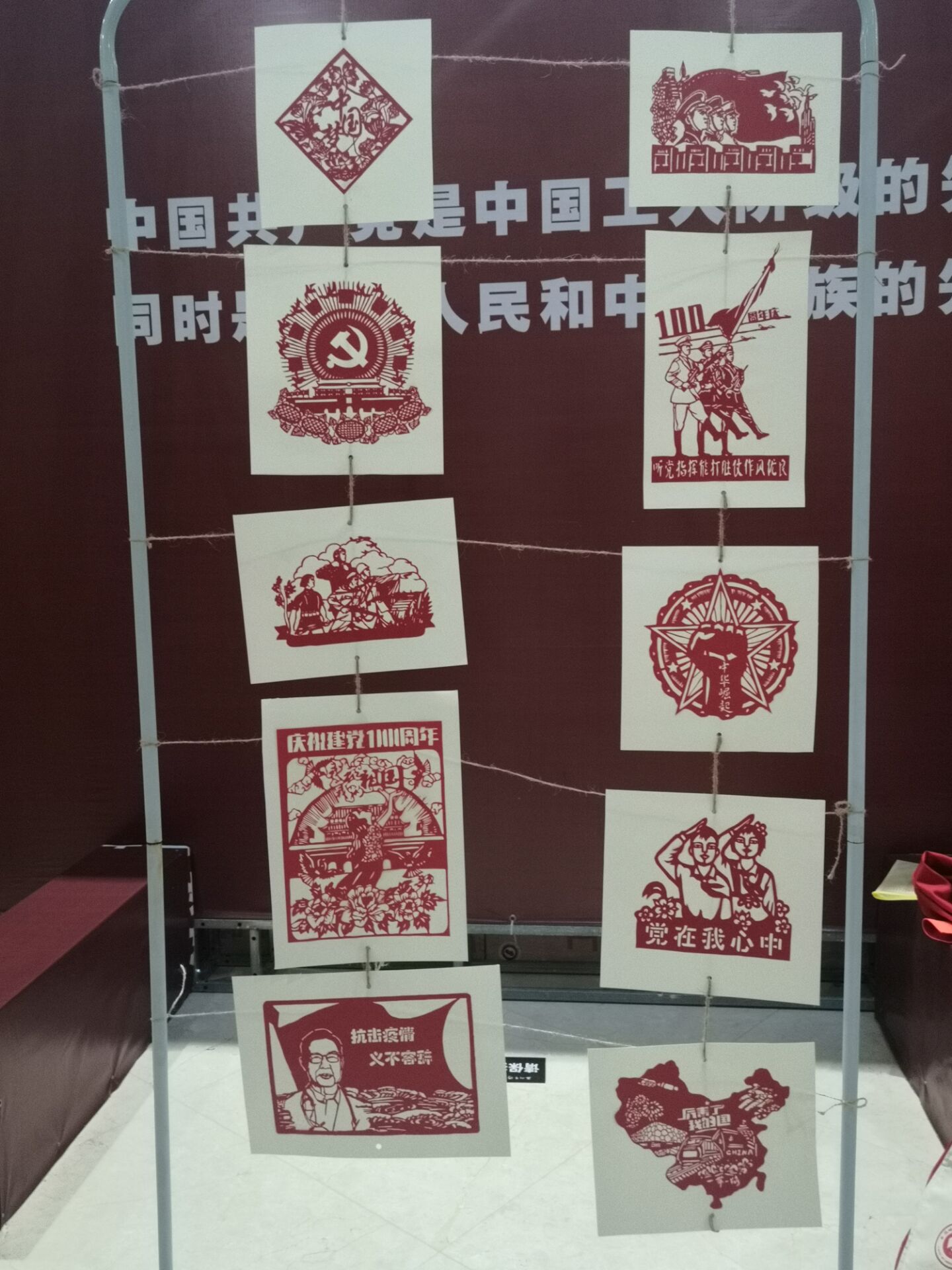 适逢盛时,为献礼建党百年,“百年剪影”团队以百年党史为主题,创作了许多优秀的剪纸作品。制作作品前,队员们在芜湖市博物馆参观了“伟大历程——庆祝中国共产党成立100周年主题展”,深入了解党波澜壮阔的奋斗史。并分发调查问卷,收集群众对用剪纸献礼建党百年形式的建议。7月16日,芜湖市博物馆展出了一系列团队队员的剪纸作品,红色的党旗、灵动的剪纸红船、伟大的开国元勋……这些优秀的作品,寄寓着队员们对建党百年的深深祝福。