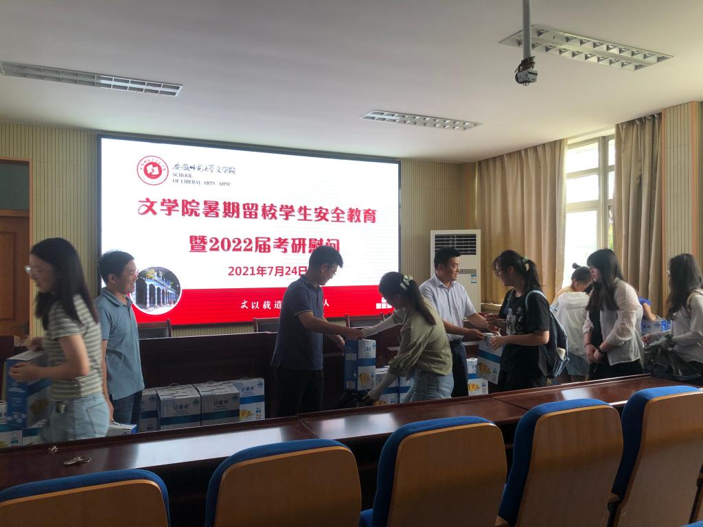会上,参会领导老师还为留校考研学生送上了精心准备的暑期慰问品。