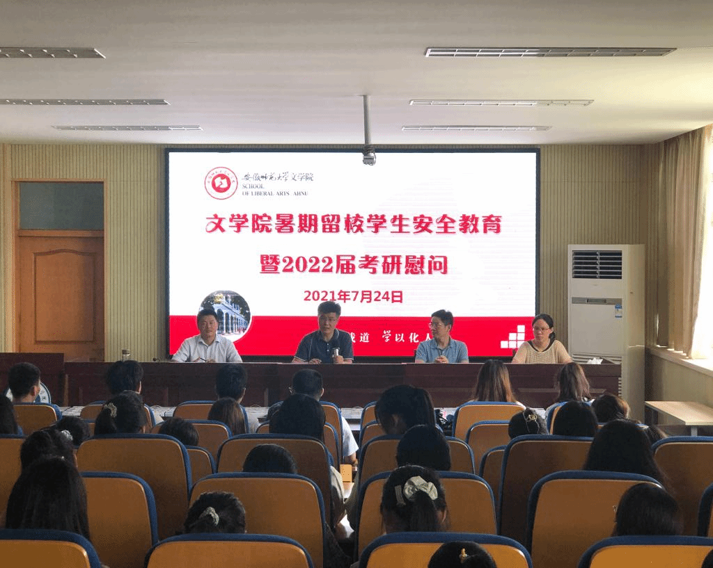 本网讯(图/文 胡树亮)为强化暑期留校学生安全教育,提高学生安全意识,同时为留校考研学生进行备考指导。7月24日上午,必赢线路检测3003no1在行政楼三楼报告厅召开暑期留校学生安全教育暨2022届毕业生考研慰问会。必赢线路检测3003no1院长项念东、党委副书记刘飞、副院长李伟、毕业班辅导员以及全体2022届留校考研学生参加了会议。会议由辅导员朱露露主持。