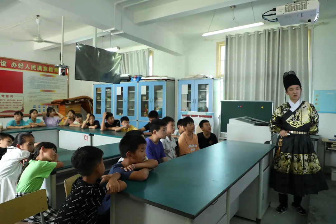 而在传统习俗课上,志愿者以身之衣,以案之书,引领学生感悟古人风采。着一身古衣,学千年习俗,点点细节尽显历史文化。前路漫漫,这段习俗文化之旅仍在继续……