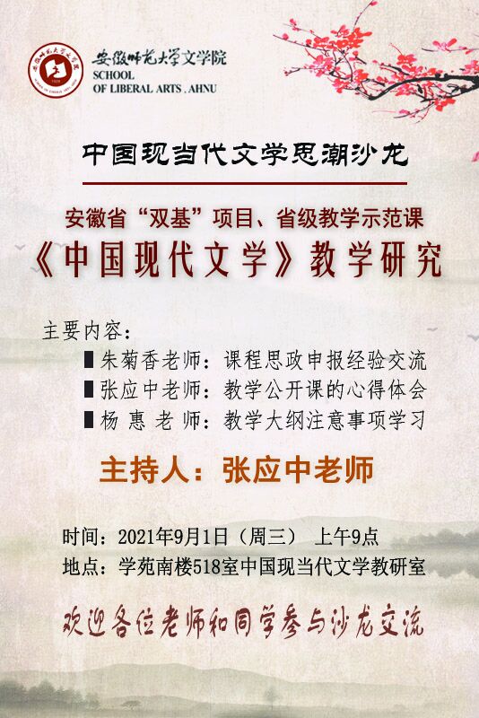 中国现当代文学思潮沙龙预告