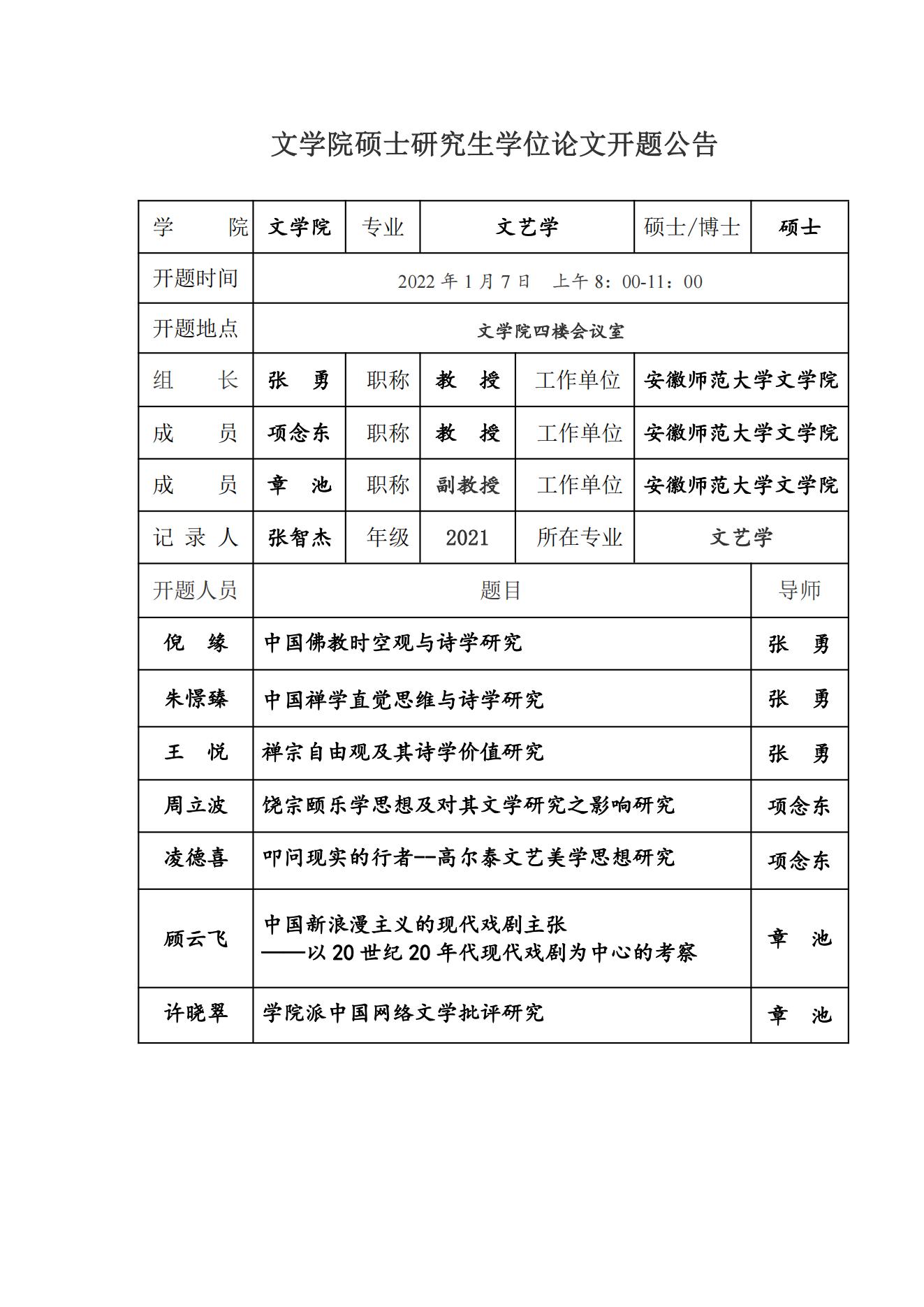 必赢线路检测3003no1硕士研究生学位论文开题公告【文艺学】