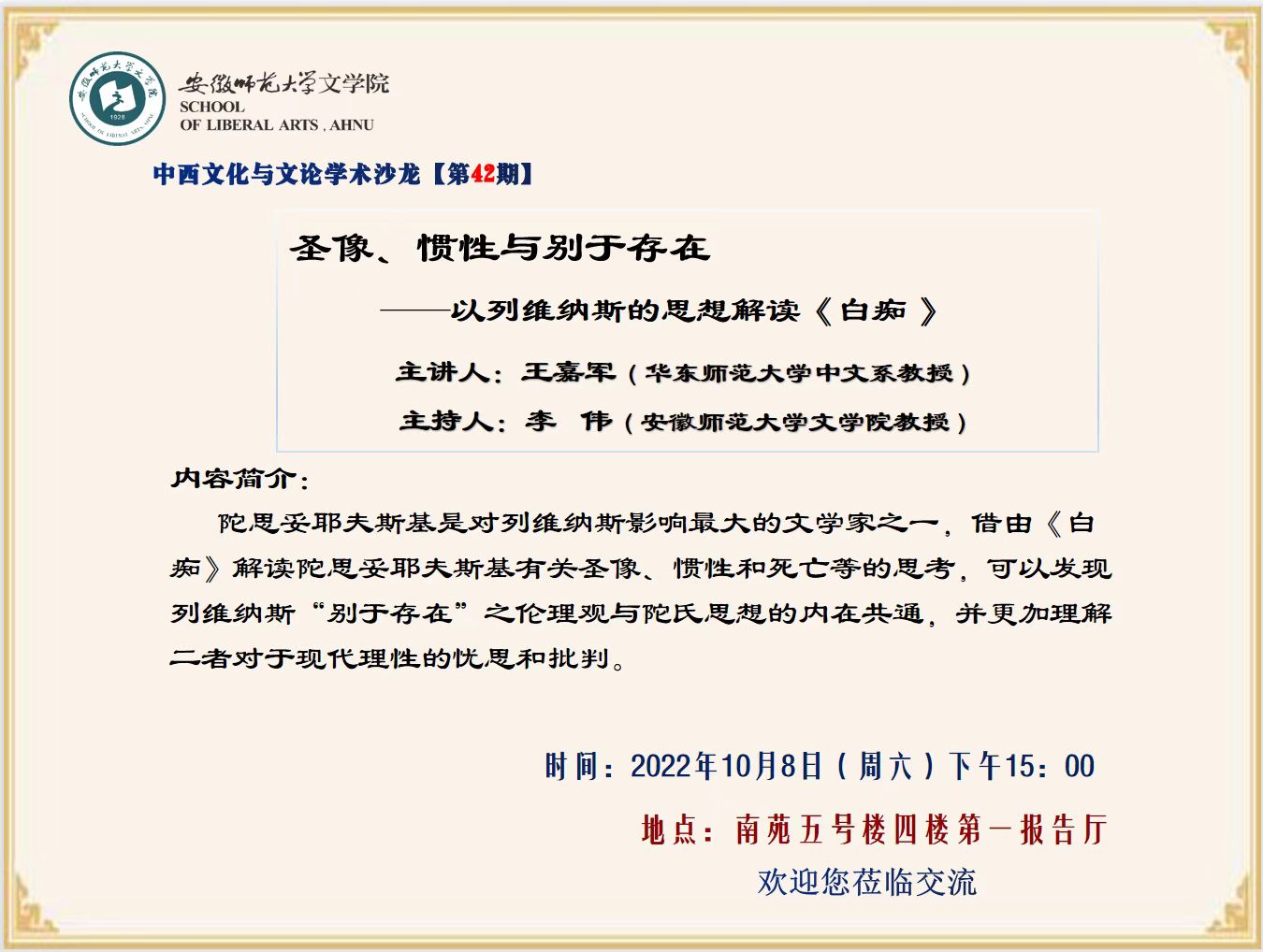 中西文化与文论学术沙龙【第42期】预告