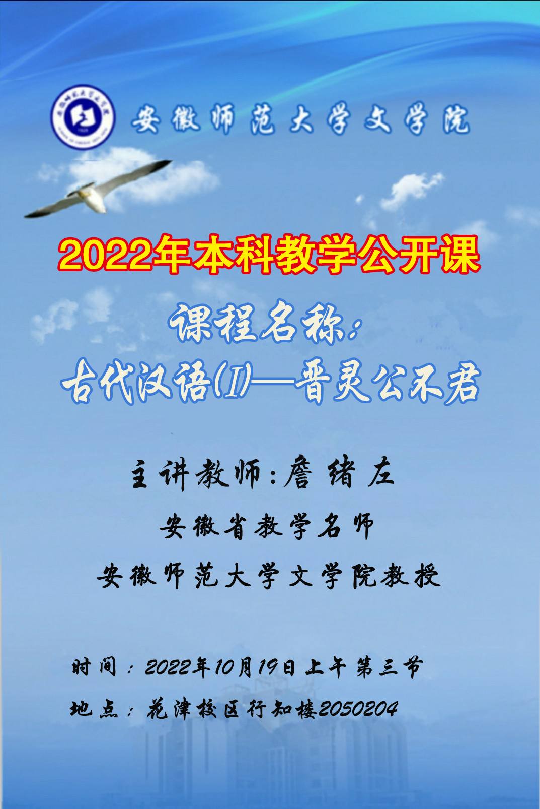 2022年本科教学院级公开课:詹绪左老师--古代汉语(I)
