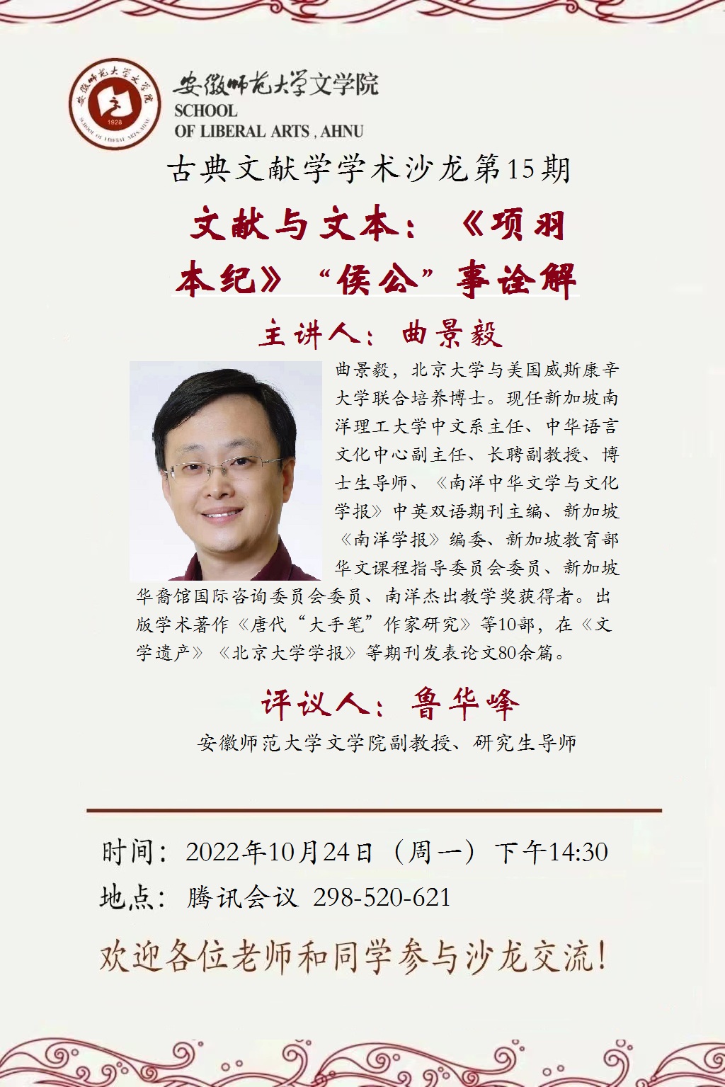古典文献学学术沙龙【第15期】预告