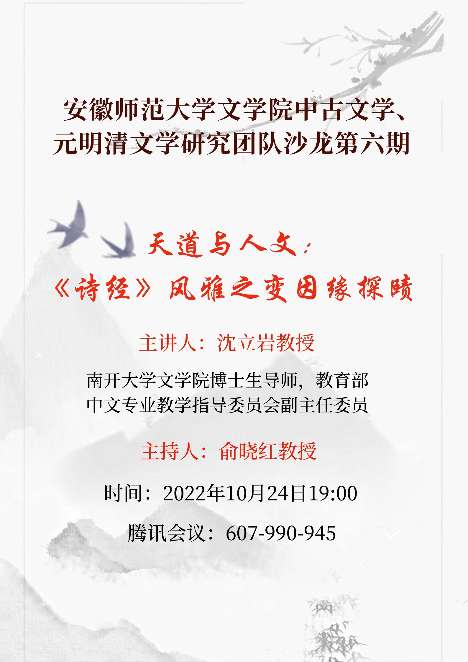 中古文学研究团队、元明清文学研究团队学术沙龙【第6期】预告