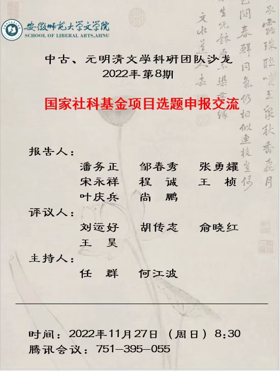 中古文学研究团队、元明清文学研究团队学术沙龙【第8期】预告