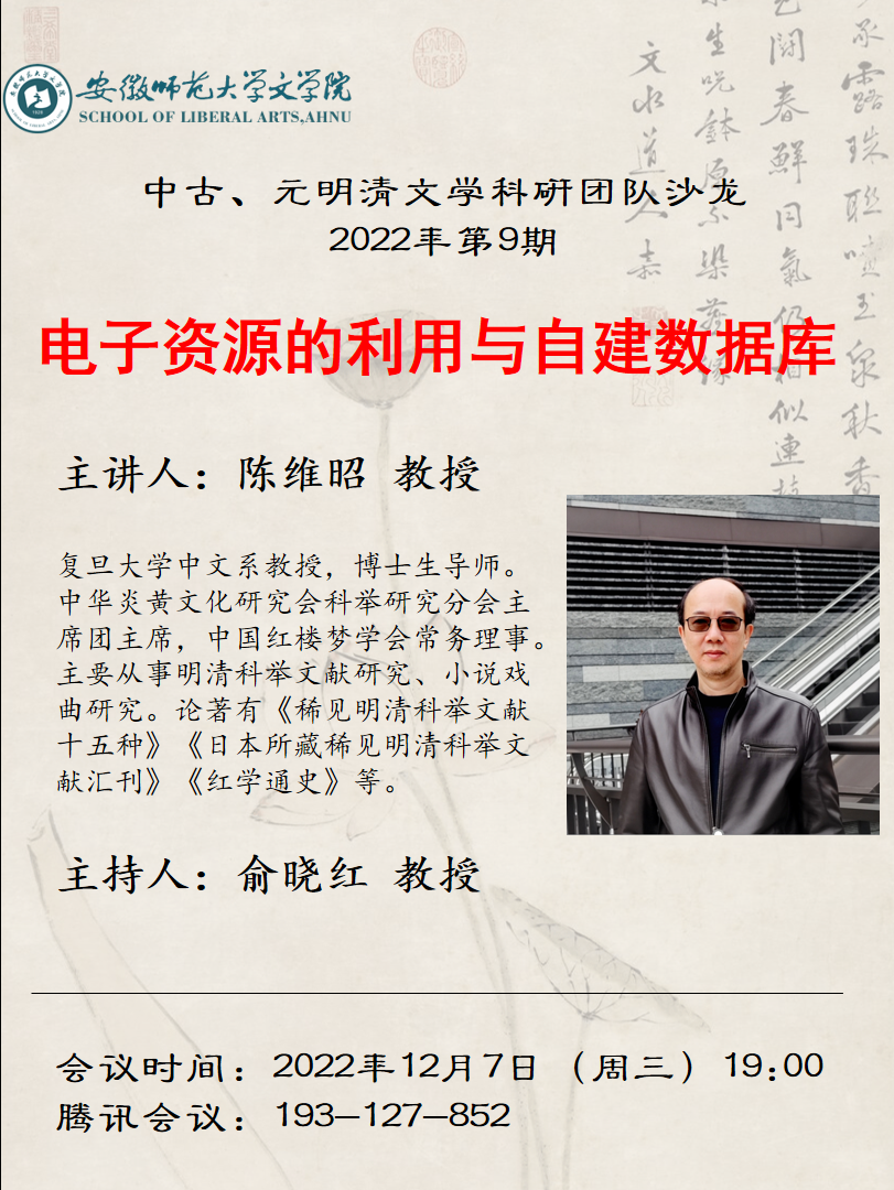 中古文学研究团队、元明清文学研究团队学术沙龙【第9期】预告
