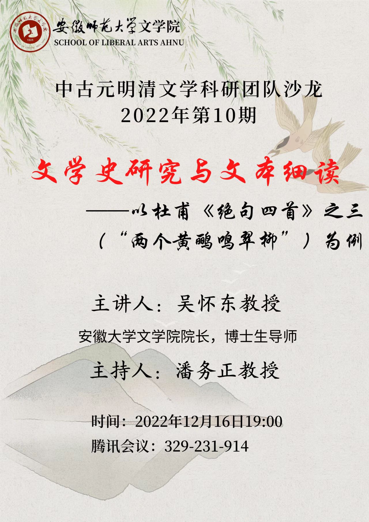中古文学研究团队、元明清文学研究团队学术沙龙【第10期】预告