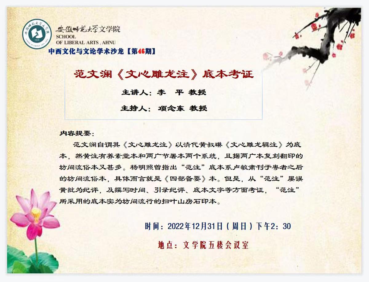 中西文化与文论学术沙龙【第46期】预告