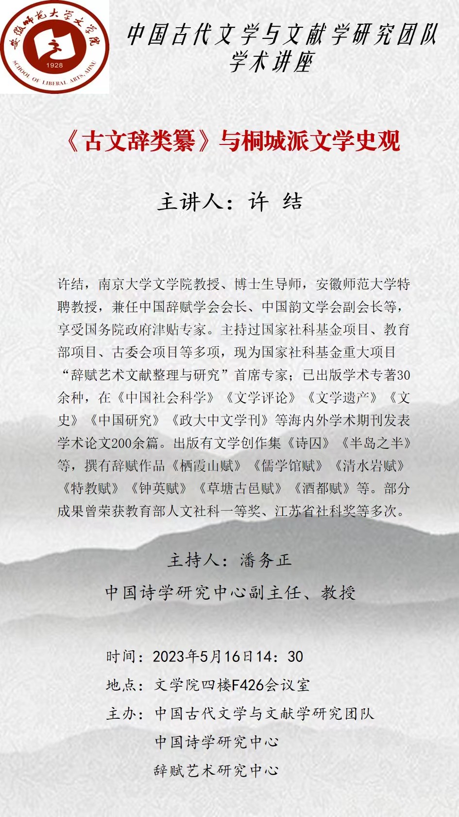 中国古代文学与文献学研究团队、中国诗学中心学术讲座预告