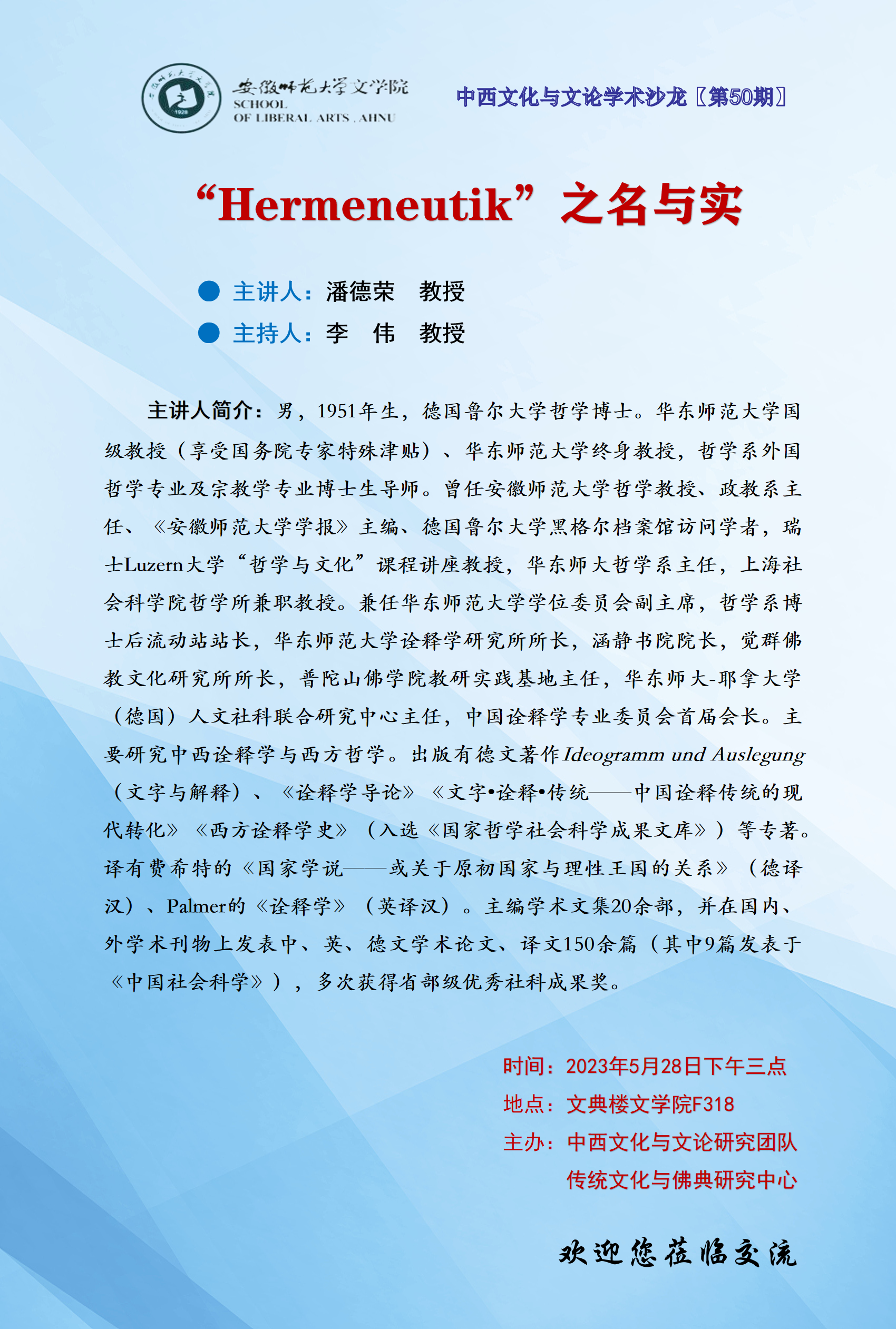 【沙龙预告】中西文化与文论学术沙龙第50期