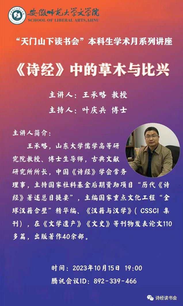 “天门山下读书会”本科生学术月系列讲座:《诗经》中的草木与比兴