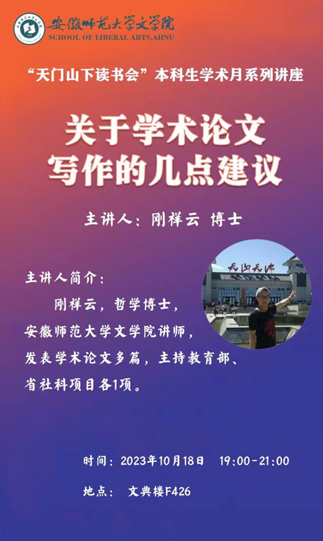 “天门山下读书会”本科生学术月系列讲座:关于学术论文写作的几点建议