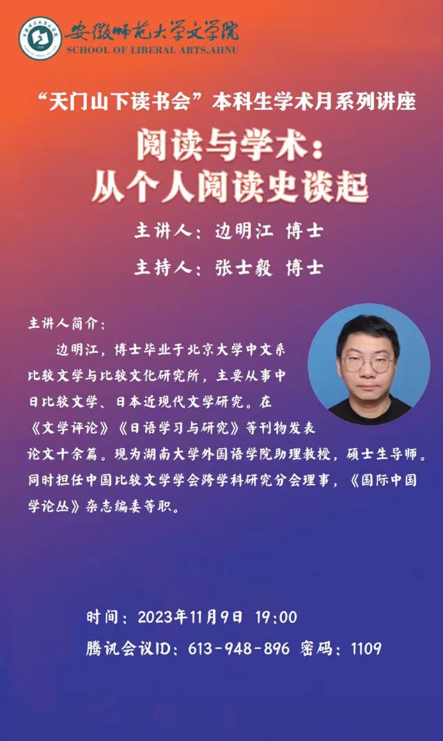 “天门山下读书会”本科生学术月系列讲座 :阅读与学术:从个人阅读史谈起