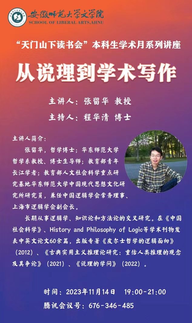 “天门山下读书会”本科生学术月系列讲座 :从说理到学术写作