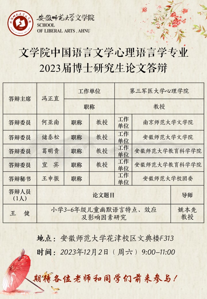 必赢线路检测3003no1中国语言文学专业心理语言学方向2023届博士研究生论文答辩
