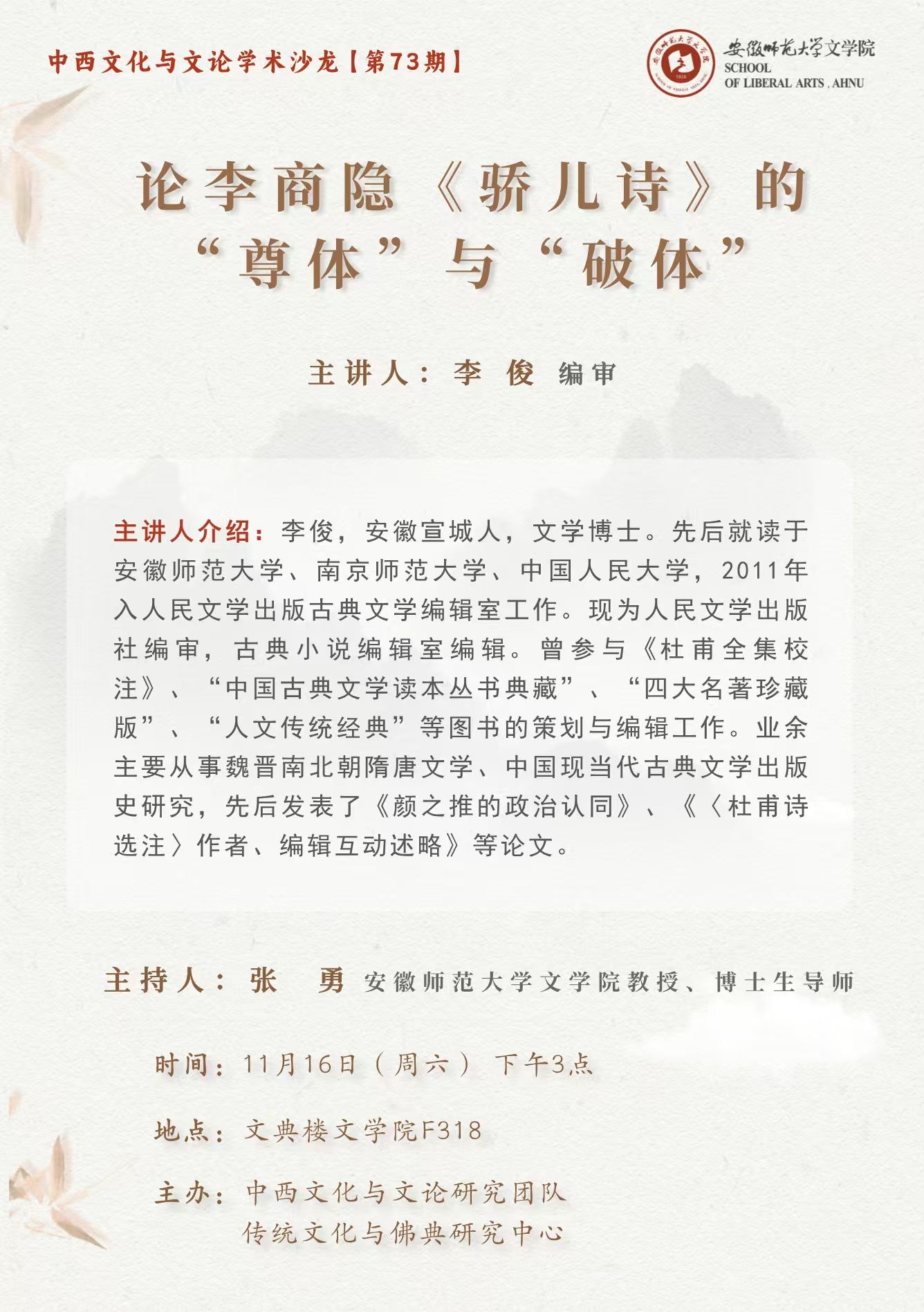中西文化与文论学术沙龙【第73期】预告