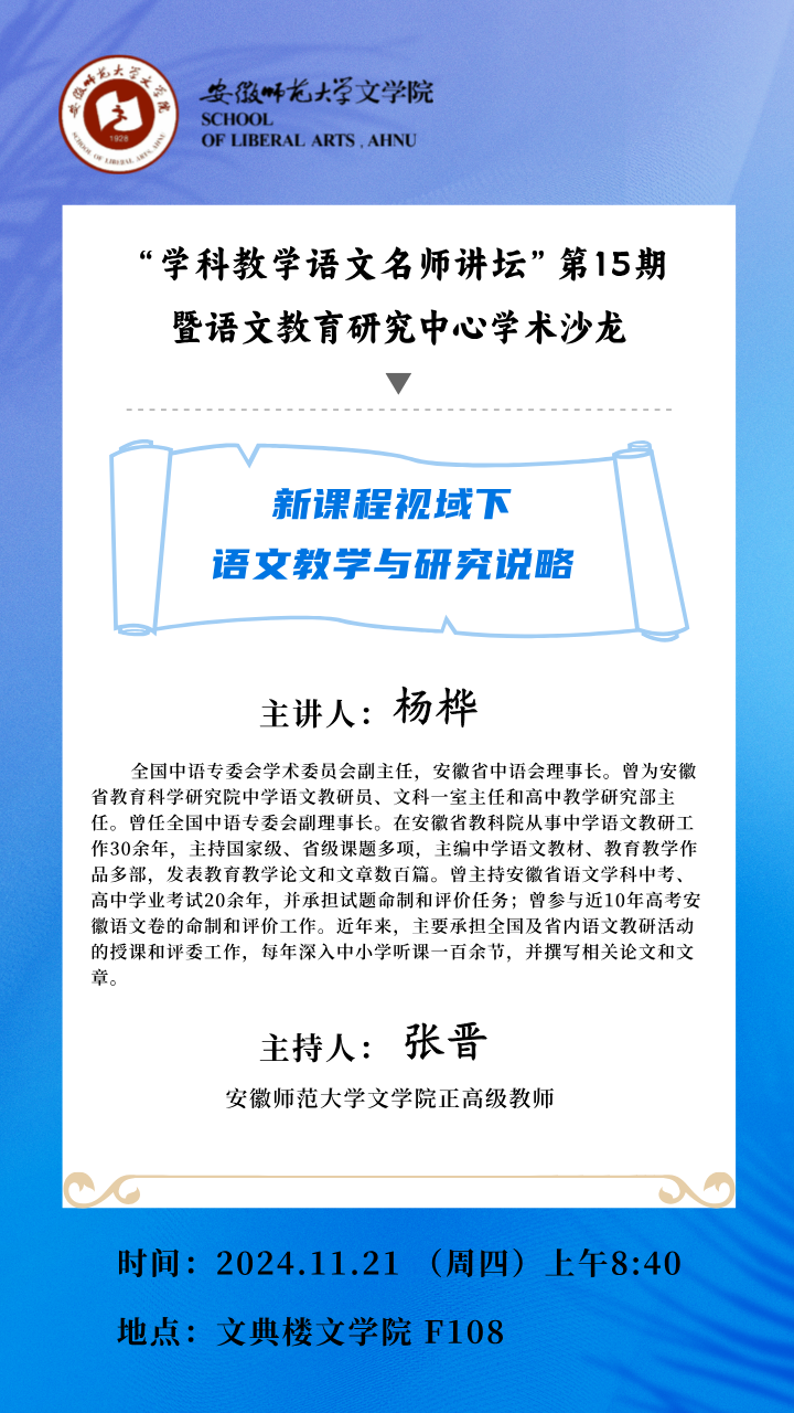 “学科教学语文名师讲坛”第15期暨语文教育研究中心学术沙龙