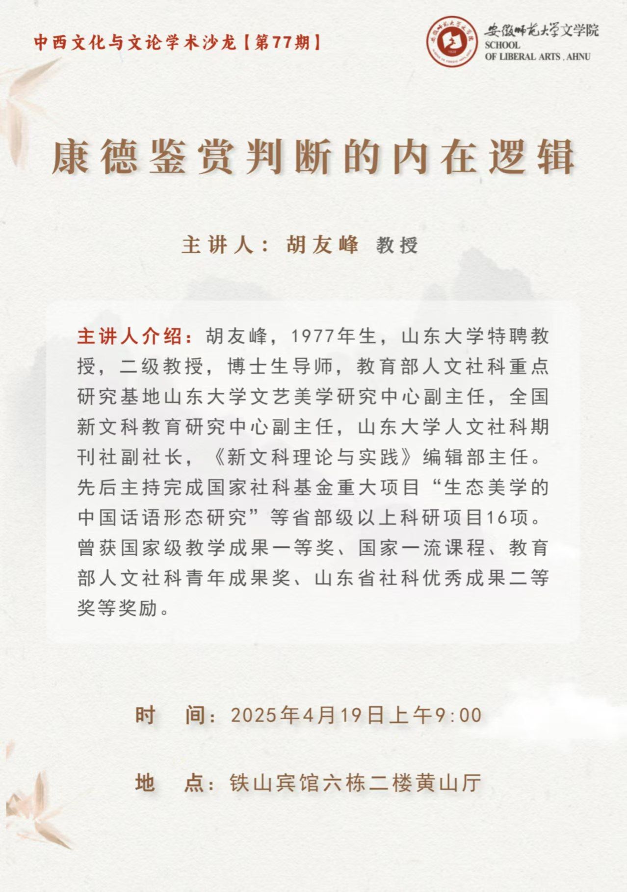 中西文化与文论学术沙龙【第77期】预告