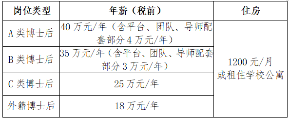 各岗位类型博士后的年薪、住房等按照岗位类型兑现:
