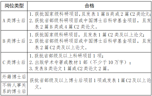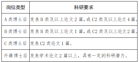 5.具有较强的科研能力和创新能力,具备较强的学术发展潜力。申请不同岗位类型博士后的科研条件参见下表: