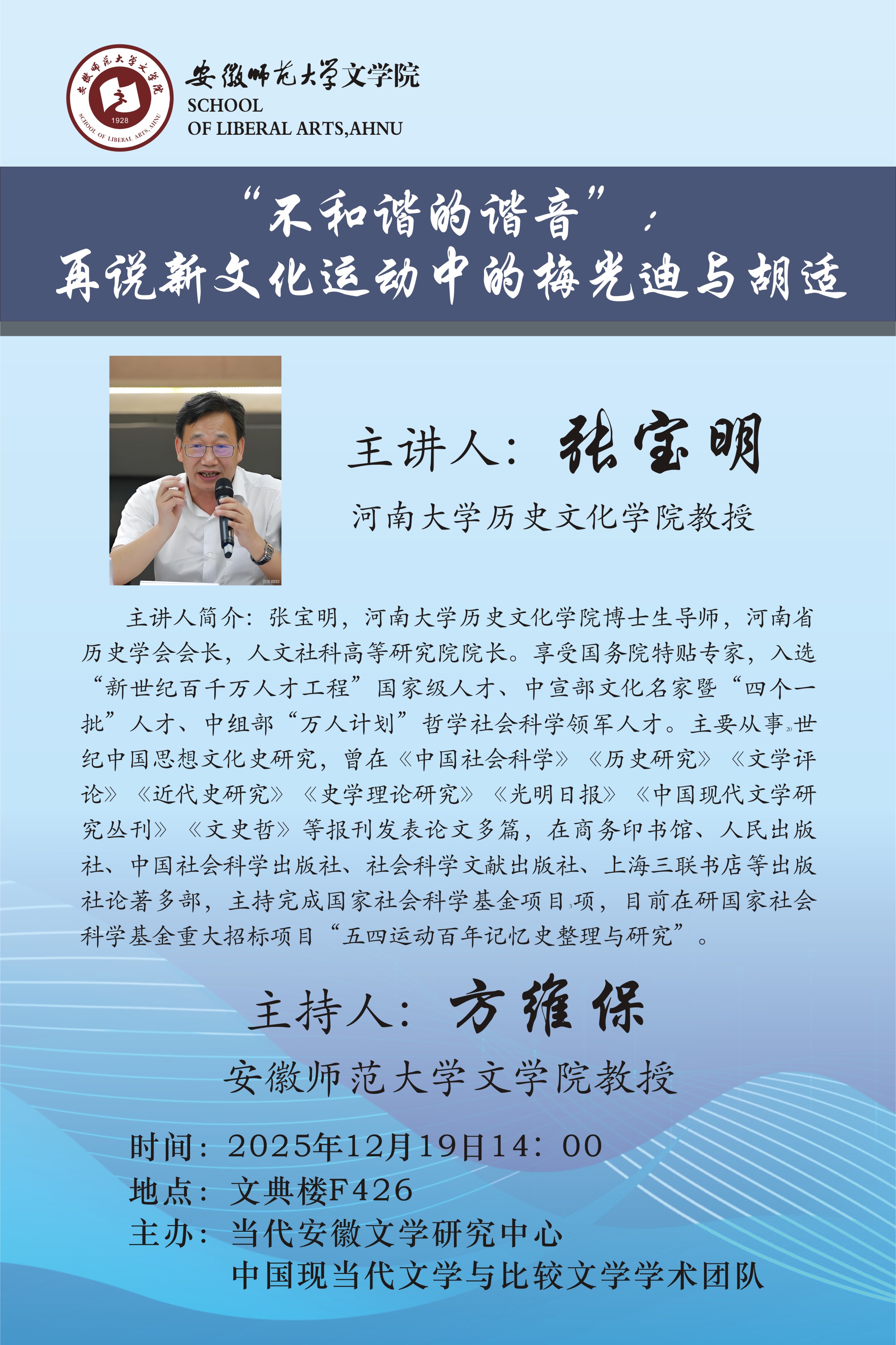 【学术讲座】张宝明:“不和谐的谐音”:再说新文化运动中的梅光迪与胡适