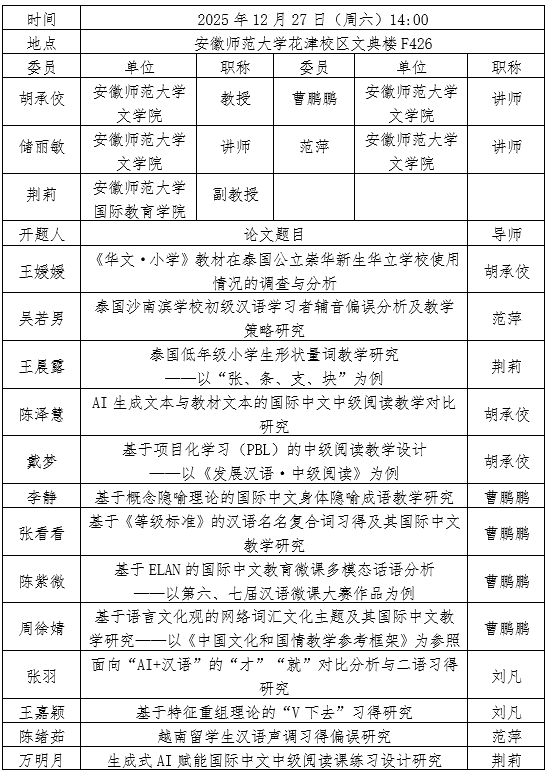 国际中文教育专业2024级研究生开题公告(第一组)