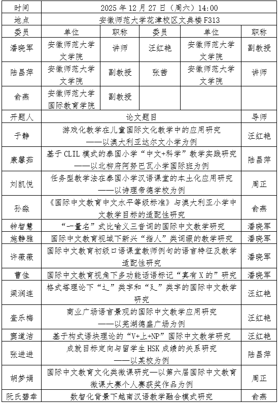 国际中文教育专业2024级研究生开题公告(第二组)