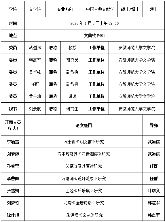必赢线路检测3003no1中国古典文献学专业2024级硕士研究生学位论文开题公告