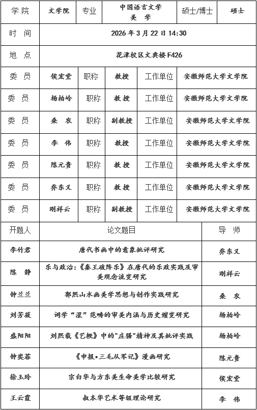 必赢线路检测3003no1美学专业2024级硕士研究生学位论文开题公告