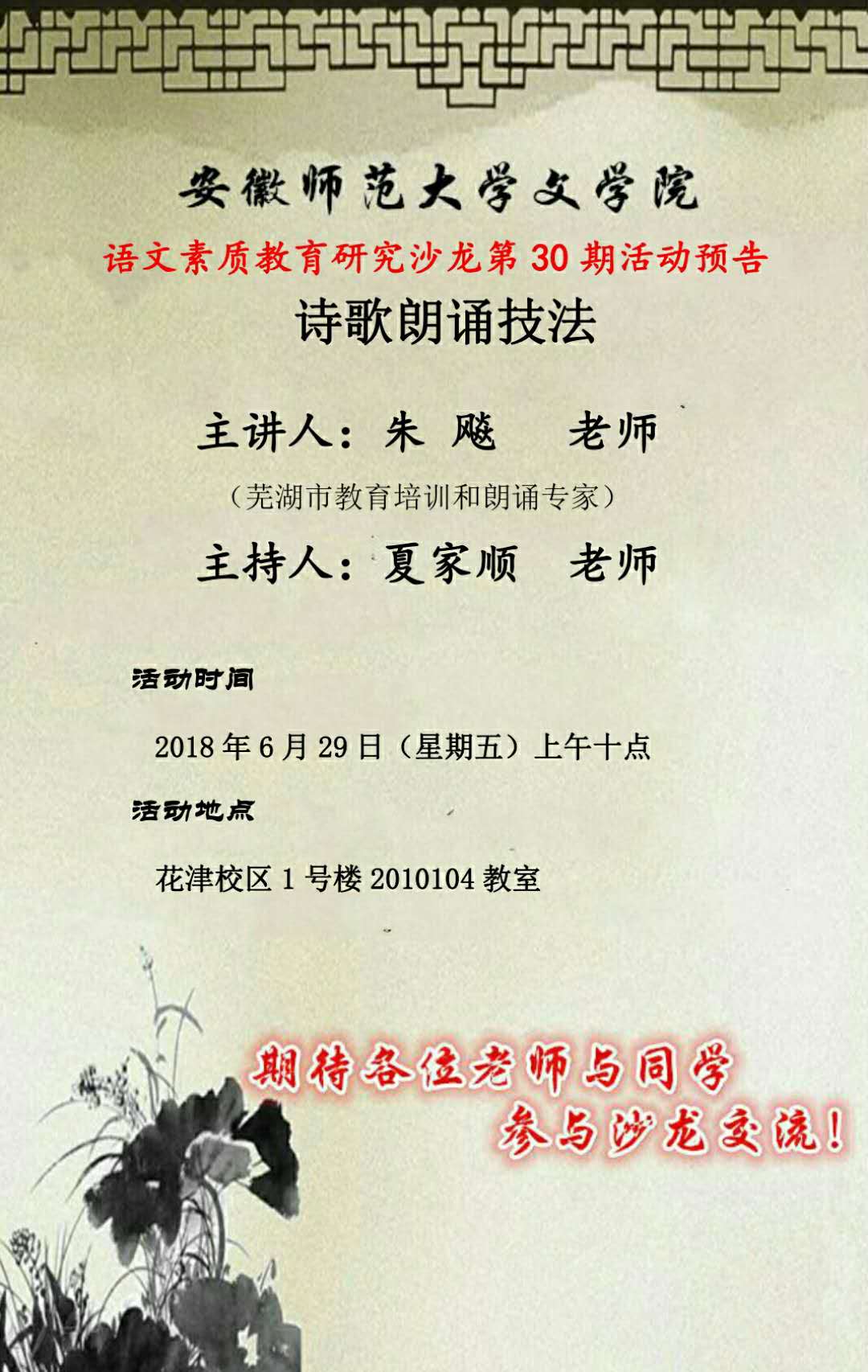语文素质教育研究沙龙预告