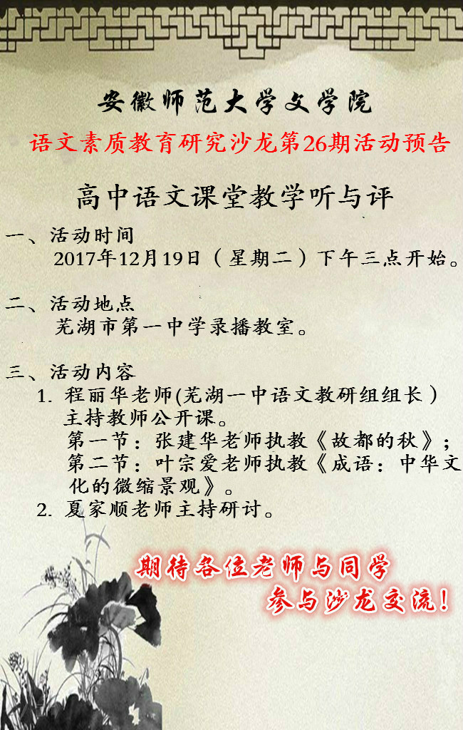 语文素质教育研究沙龙预告
