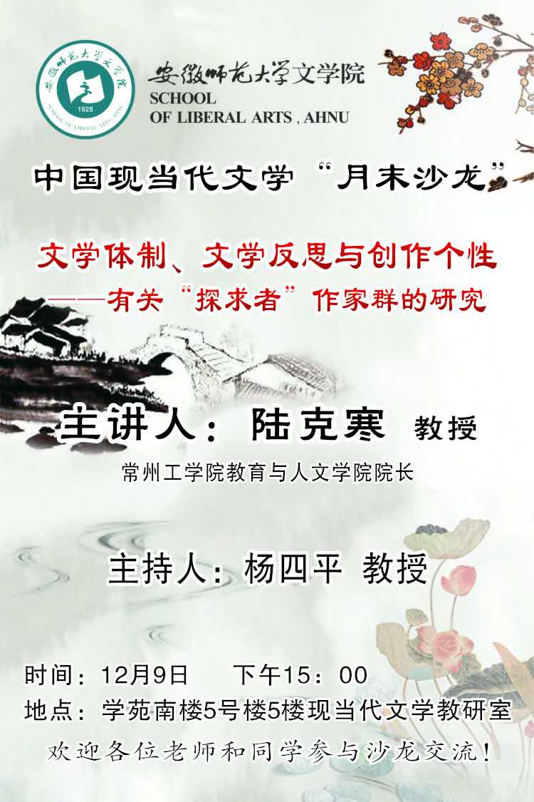 中国现当代文学“月末”沙龙预告